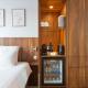 Номер оборудован кондиционером и системой отопления для поддержания комфортной температуры независимо от сезона. В распоряжении гостей двуспальная кровать с перьевыми и неперьевыми подушками, шкаф или гардероб для хранения вещей, утюг и сейф. Мини-кухня включает холодильник, мини-бар, электрический чайник и кофемашину.