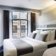 Su localización privilegiada permite acceder fácilmente a numerosos puntos de interés: la estación central de Ámsterdam está a apenas 350 metros, mientras que la famosa zona comercial Kalverstraat queda a solo 650 metros. Además, el museo Casa Rembrandt dista aproximadamente diez minutos caminando. En los alrededores del hotel abundan restaurantes, tiendas y bares que complementan una estancia dinámica y cómoda.